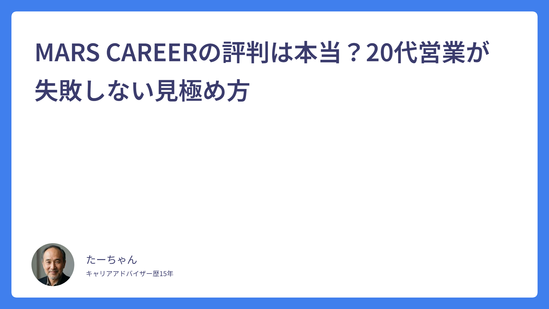 この記事は、MARS CAREERの利用を検討している20代営業職の方や、営業未経験から転職を考えている方に向けた解説記事です。