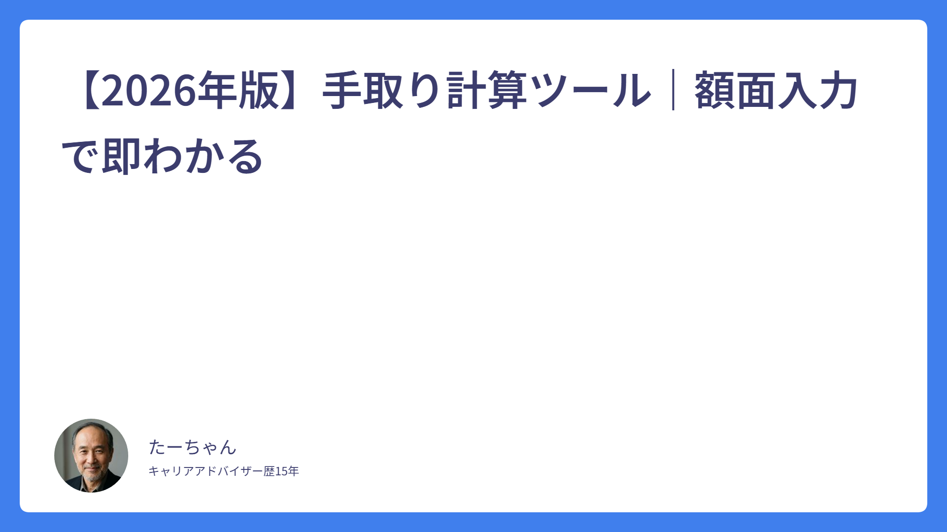 【2026年版】手取り計算ツール|額面入力で即わかる